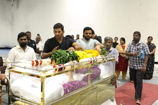 நடிகர்கள் சிவகுமார், சூர்யா, பார்த்திபன், மோகன் ராமன், ராட்சசன் சரவணன், டிவி வரதராஜன், செல் முருகன், பிரமிடு நடராஜன், ஒய்ஜி மகேந்திரன், ஈஸ்வரி ராவ், விஷால், விக்ரம் பிரபு, புனிதா பிரபு, சின்னி ஜெயந்த், கருணாஸ், மணிரத்னம், பிசிஸ்ரீராம், மோகன், அருண் விஜய், விஜயகுமார், சித்ரா லட்சுமணன், துஷ்யந்த், ஆனந்த்ராஜ், சினேகன், நாசர், ஜீவா, பாண்டியராஜன், ஆர்த்தி, கணேஷ், கே பாக்யராஜ், ஆகியோர் நேரில் சென்று அஞ்சலி செலுத்தினர்.